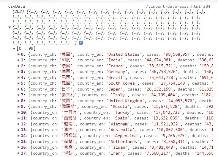 - 範例資料檔案連結: COVID-19各國家地區累積病例數與死亡數
